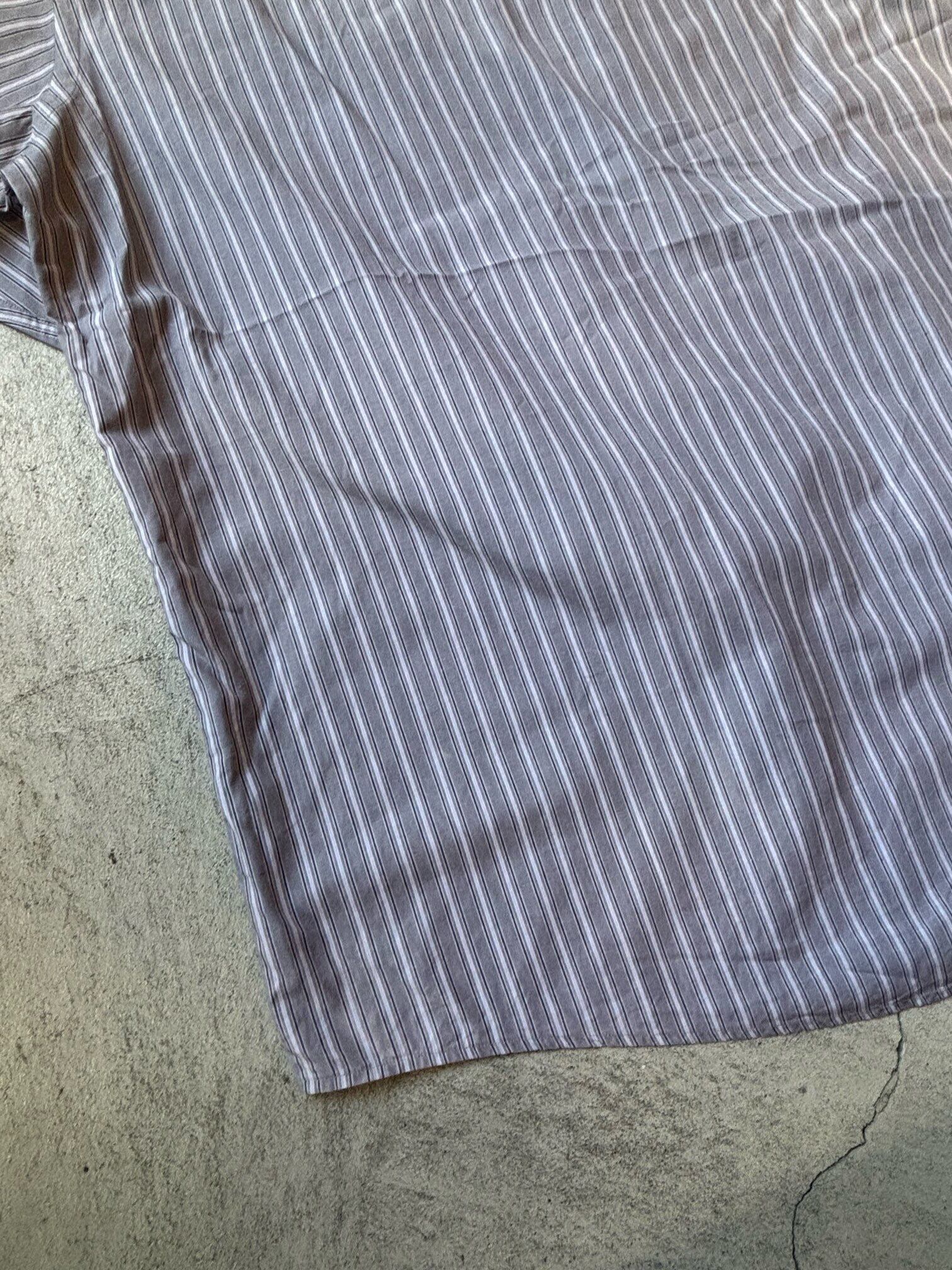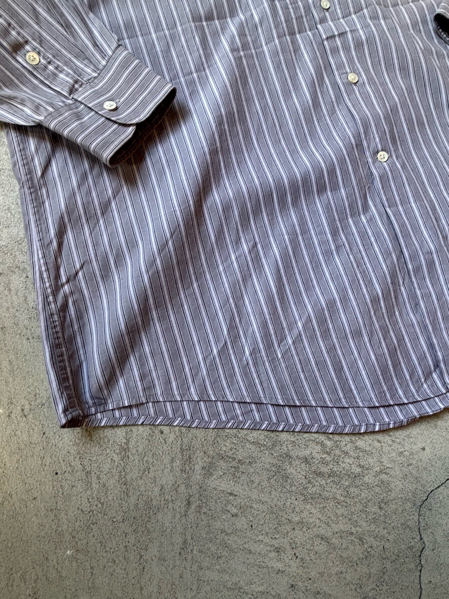 グレーベースに白のストライプで上品なシャツです。