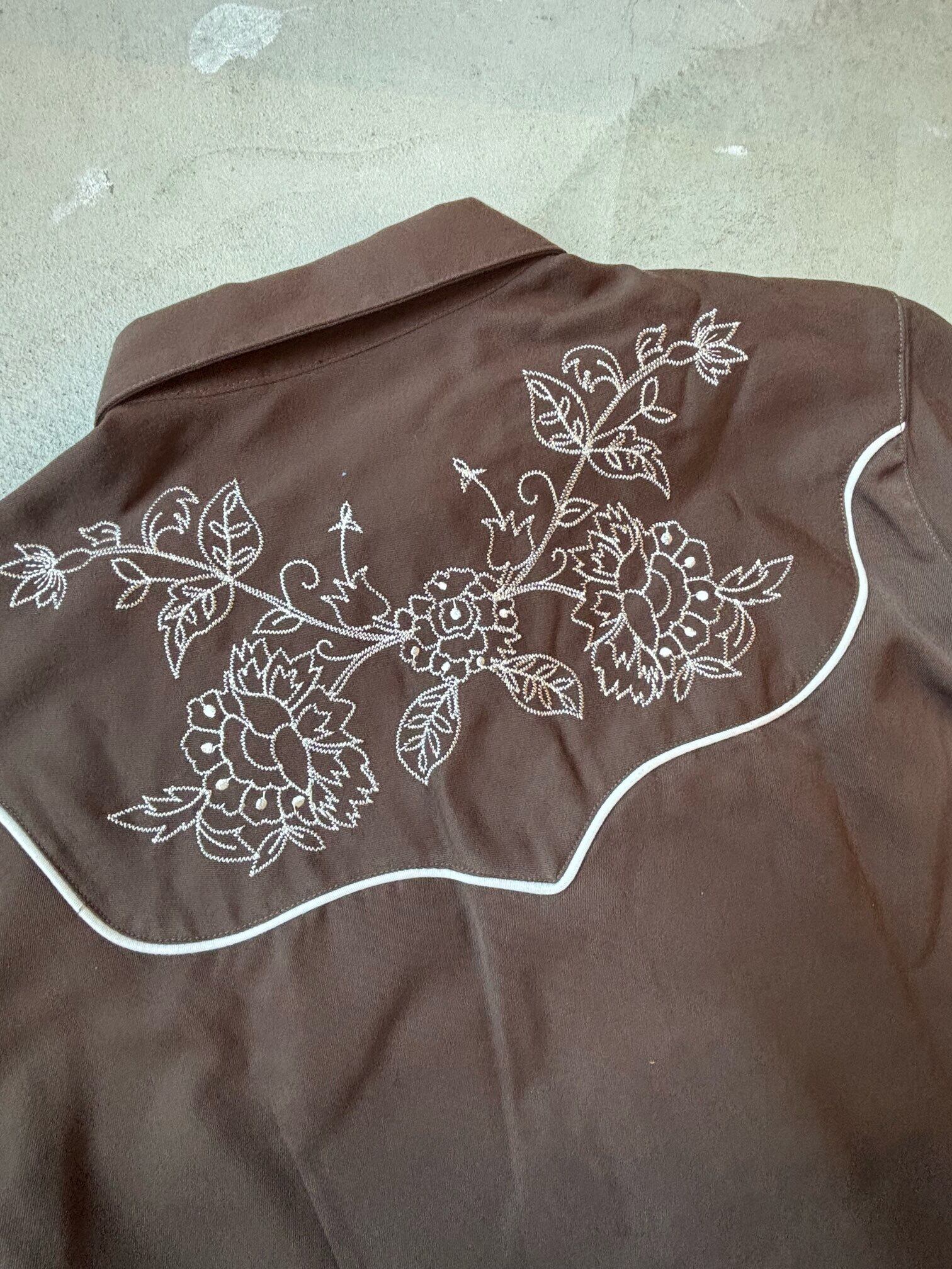ブラウンボディに白の刺繍が目一杯描かれたとても綺麗なウエスタンシャツです。ここ数年ウエスタンテイストは小さなトレンドになっていて、特にコアなファッションフリークの間では定番として着られています。ヴィトンのクリエイティブディレクターのファレルは常にウエスタンテイストが入っていますね。